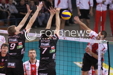 31.10.2011 RZESZOW SIATKOWKA PLUS LIGA 2011/2012 MEN VOLLEYBALL POLAND POLISH PLUSLIGA LEAGUE SEASON 2011/2012 MECZ ASSECO RESOVIA RZESZOW - TYTAN AZS CZESTOCHOWA N/Z ATAK PAUL LOTMAN BLOK LUKASZ WISNIEWSKI FABIAN WISNIEWSKI FOT MACIEJ GOCLON / FOTONEWS