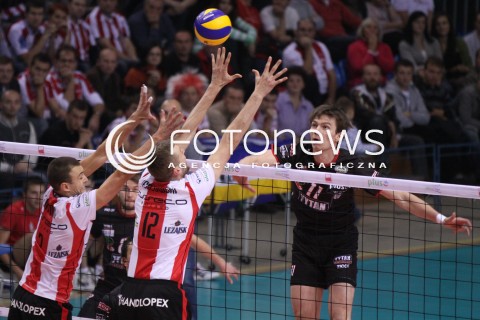 31.10.2011 RZESZOW SIATKOWKA PLUS LIGA 2011/2012 MEN VOLLEYBALL POLAND POLISH PLUSLIGA LEAGUE SEASON 2011/2012 MECZ ASSECO RESOVIA RZESZOW - TYTAN AZS CZESTOCHOWA N/Z ATAK WOJCIECH SOBALA BLOK PAUL LOTMAN LUKASZ PERLOWSKI FOT MACIEJ GOCLON / FOTONEWS