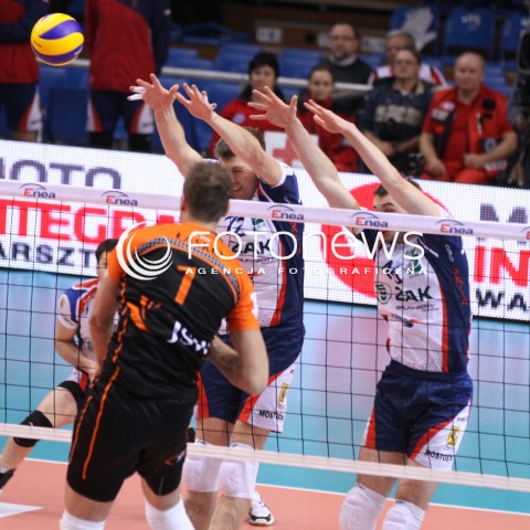 21.01.2012 RZESZOW SIATKOWKA PUCHAR POLSKI 2012 MEN VOLLEYBALL ENEA CUP MEN MECZ POLFINAL SEMIFINAL ZAKSA KEDZIERZYN KOZLE - JASTRZEBSKI WEGIEL N/Z ATAK MICHAL LASKO BLOK MICHAL RUCIAK WOJCIECH KAZMIERCZAK FOT MACIEJ GOCLON / FOTONEWS