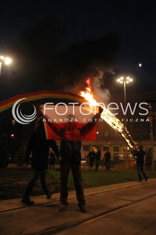 11.11.2013 WARSZAWA MARSZ NIEPODLEGLOSCI 2013 N/Z ZAMIESZKI PLONACA TECZA NA PLACU ZBAWICIELA FOT JAKUB NICIEJA / FOTONEWS