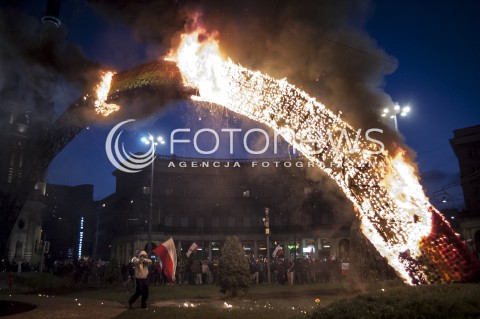 11.11.2013 WARSZAWA MARSZ NIEPODLEGLOSCI 2013 N/Z ZAMIESZKI PLONACA TECZA NA PLACU ZBAWICIELA FOT JAKUB NICIEJA / FOTONEWS