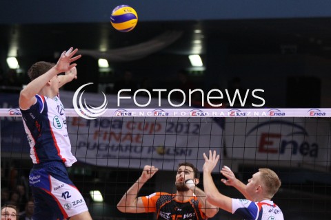 21.01.2012 RZESZOW SIATKOWKA PUCHAR POLSKI 2012 MEN VOLLEYBALL ENEA CUP MEN MECZ POLFINAL SEMIFINAL ZAKSA KEDZIERZYN KOZLE - JASTRZEBSKI WEGIEL N/Z ATAK WOJCIECH KAZMIERCZAK BLOK RUSSELL HOLMES FOT MACIEJ GOCLON / FOTONEWS