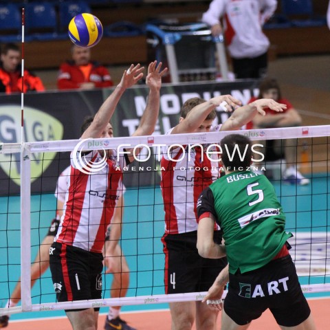 14.01.2012 RZESZOW SIATKOWKA PLUS LIGA 2011/2012 MEN VOLLEYBALL POLAND POLISH PLUSLIGA LEAGUE SEASON 2011/2012 MECZ ASSECO RESOVIA RZESZOW - FART KIELCE N/Z ATAK RAFAL BUSZEK BLOK PIOTR NOWAKOWSKI MACIEJ DOBROWOLSKI FOT MACIEJ GOCLON / FOTONEWS