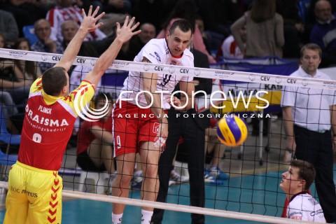 14.12.2011 RZESZOW SIATKOWKA PUCHAR CEV 1/8 FINALU 2012 MEN 2011/2012 CEV VOLLEYBALL CUP MEN MECZ ASSECO RESOVIA RZESZOW - DRAISMA DYNAMO APELDOORN N/Z ATAK GYORGY GROZER BLOK NIELS PLINCK FOT MACIEJ GOCLON / FOTONEWS