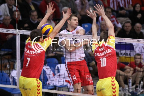 14.12.2011 RZESZOW SIATKOWKA PUCHAR CEV 1/8 FINALU 2012 MEN 2011/2012 CEV VOLLEYBALL CUP MEN MECZ ASSECO RESOVIA RZESZOW - DRAISMA DYNAMO APELDOORN N/Z ATAK ADRIAN GONTARIU BLOK STEVEN EERTMAN THOM VAN DEN HEUVEL FOT MACIEJ GOCLON / FOTONEWS
