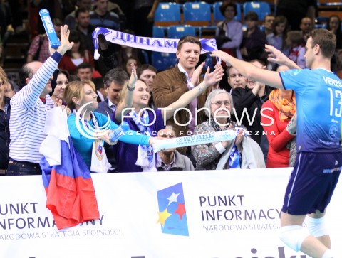 28.03.2012 RZESZOW SIATKOWKA PUCHAR CEV FINAL 2012 MEN 2011/2012 CEV VOLLEYBALL CUP MEN MECZ ASSECO RESOVIA RZESZOW - DYNAMO MOSKWA N/Z KIBICE DYNAMO MOSKWA PETR VERES FOT MACIEJ GOCLON / FOTONEWS