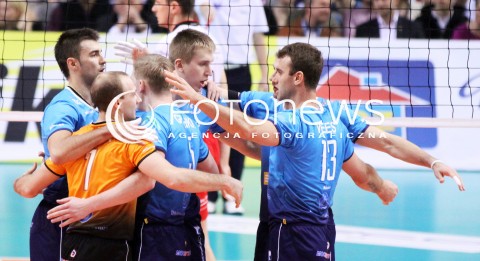 28.03.2012 RZESZOW SIATKOWKA PUCHAR CEV FINAL 2012 MEN 2011/2012 CEV VOLLEYBALL CUP MEN MECZ ASSECO RESOVIA RZESZOW - DYNAMO MOSKWA N/Z RADOSC SIATKARZY DYNAMO MOSKWA FOT MACIEJ GOCLON / FOTONEWS