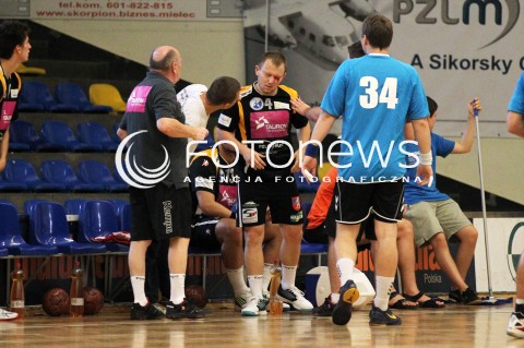 21.08.2012 MIELEC PILKA RECZNA MEZCZYZN SEZON 2012/2013 HANDBALL MATCH MECZ SPARING SPR TAURON STAL MIELEC - DYNAMO POLTAVA N/Z LUKASZ JANYST URAZ KONTUZJA BOL KREW FOTO MACIEJ GOCLON / FOTONEWS