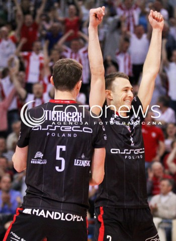 22.04.2012 RZESZOW SIATKOWKA PLUSLIGA 4. MECZ FINALOWY SEZONU 2011/2012 MEN VOLLEYBALL PLUSLIGA SEASON 2011/2012 FINAL GAME NUMBER 4 ASSECO RESOVIA - PGE SKRA BELCHATOW N/Z RADOSC PAUL LOTMAN LUKAS TICHACEK FOT MACIEJ GOCLON / FOTONEWS
