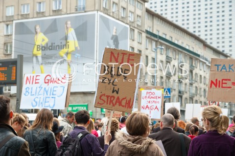 17.05.2014 WARSZAWA MARSZ SZMAT PRZECIW TOLERANCJI GWALTOW N/Z MARSZ UCZESTNICY TRANSPARENTY FOT JAKUB NICIEJA / FOTONEWS
