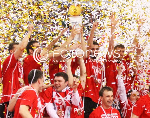 22.04.2012 RZESZOW SIATKOWKA PLUSLIGA 4. MECZ FINALOWY SEZONU 2011/2012 MEN VOLLEYBALL PLUSLIGA SEASON 2011/2012 FINAL GAME NUMBER 4 ASSECO RESOVIA - PGE SKRA BELCHATOW N/Z RADOSC WYGRANA DEKORACJA KORONACJA SIATKARZY ASSECO RESOVIA FOT MACIEJ GOCLON / FOTONEWS