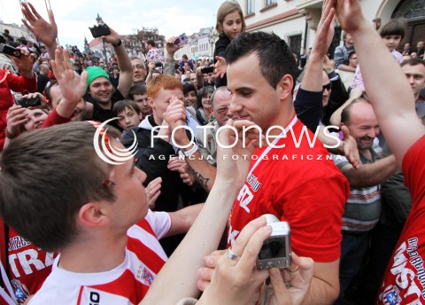22.04.2012 RZESZOW SIATKOWKA PLUSLIGA 4. MECZ FINALOWY SEZONU 2011/2012 MEN VOLLEYBALL PLUSLIGA SEASON 2011/2012 FINAL GAME NUMBER 4 ASSECO RESOVIA - PGE SKRA BELCHATOW N/Z GYORGY GEORG GROZER RADOSC KIBICOW NA ULIACACH RZESZOWA FOT MACIEJ GOCLON / FOTONEWS