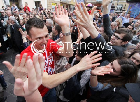 22.04.2012 RZESZOW SIATKOWKA PLUSLIGA 4. MECZ FINALOWY SEZONU 2011/2012 MEN VOLLEYBALL PLUSLIGA SEASON 2011/2012 FINAL GAME NUMBER 4 ASSECO RESOVIA - PGE SKRA BELCHATOW N/Z PAUL LOTMAN RADOSC KIBICOW NA ULIACACH RZESZOWA FOT MACIEJ GOCLON / FOTONEWS