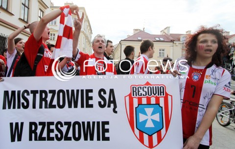 22.04.2012 RZESZOW SIATKOWKA PLUSLIGA 4. MECZ FINALOWY SEZONU 2011/2012 MEN VOLLEYBALL PLUSLIGA SEASON 2011/2012 FINAL GAME NUMBER 4 ASSECO RESOVIA - PGE SKRA BELCHATOW N/Z RADOSC KIBICOW NA ULIACACH RZESZOWA BANER FOT MACIEJ GOCLON / FOTONEWS