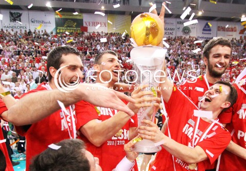 22.04.2012 RZESZOW SIATKOWKA PLUSLIGA 4. MECZ FINALOWY SEZONU 2011/2012 MEN VOLLEYBALL PLUSLIGA SEASON 2011/2012 FINAL GAME NUMBER 4 ASSECO RESOVIA - PGE SKRA BELCHATOW N/Z KRZYSZTOF IGNACZAK MARKO BOJIC ADRIAN GONTARIU MATEUSZ MIKA PUCHAR RADOSC WYGRANA DEKORACJA KORONACJA SIATKARZY ASSECO RESOVIA FOT MACIEJ GOCLON / FOTONEWS