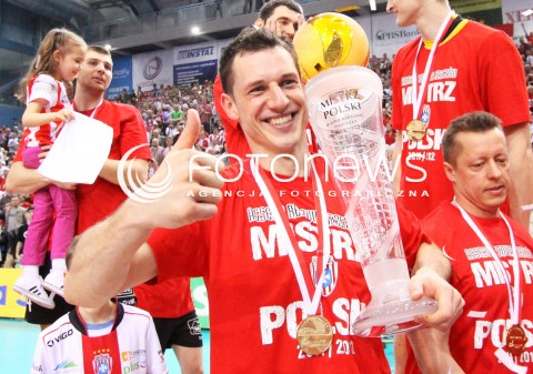 22.04.2012 RZESZOW SIATKOWKA PLUSLIGA 4. MECZ FINALOWY SEZONU 2011/2012 MEN VOLLEYBALL PLUSLIGA SEASON 2011/2012 FINAL GAME NUMBER 4 ASSECO RESOVIA - PGE SKRA BELCHATOW N/Z OLIEG ACHREM ALEH AKHREM PUCHAR RADOSC WYGRANA DEKORACJA KORONACJA SIATKARZY ASSECO RESOVIA FOT MACIEJ GOCLON / FOTONEWS