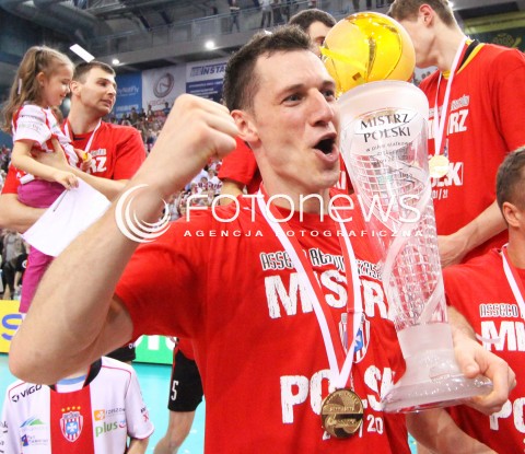 22.04.2012 RZESZOW SIATKOWKA PLUSLIGA 4. MECZ FINALOWY SEZONU 2011/2012 MEN VOLLEYBALL PLUSLIGA SEASON 2011/2012 FINAL GAME NUMBER 4 ASSECO RESOVIA - PGE SKRA BELCHATOW N/Z OLIEG ACHREM ALEH AKHREM PUCHAR RADOSC WYGRANA DEKORACJA KORONACJA SIATKARZY ASSECO RESOVIA FOT MACIEJ GOCLON / FOTONEWS