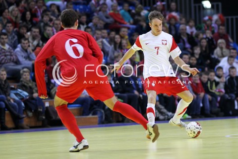05.12.2012 RZESZOW FUTSAL PILKA NOZNA REPREZENTACJA POLSKI MECZ TOWARZYSKI POLSKA - MOLDAWIA N/Z MICHAL KUBIK CONSTANTIN BURDUJEL FOT MACIEJ GOCLON / FOTONEWS