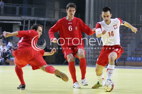 05.12.2012 RZESZOW FUTSAL PILKA NOZNA REPREZENTACJA POLSKI MECZ TOWARZYSKI POLSKA - MOLDAWIA N/Z BARTOSZ LESZYK CONSTANTIN BURDUJEL SERGHEI TUNGUSCOV FOT MACIEJ GOCLON / FOTONEWS