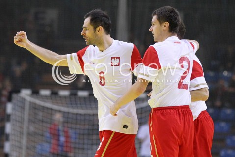 05.12.2012 RZESZOW FUTSAL PILKA NOZNA REPREZENTACJA POLSKI MECZ TOWARZYSKI POLSKA - MOLDAWIA N/Z LUKASZ PIECZYNSKI DANIEL LEBIEDZINSKI RADOSC GOL BRAMKA FOT MACIEJ GOCLON / FOTONEWS