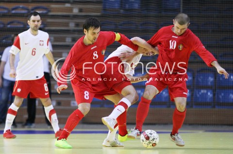 05.12.2012 RZESZOW FUTSAL PILKA NOZNA REPREZENTACJA POLSKI MECZ TOWARZYSKI POLSKA - MOLDAWIA N/Z LUKASZ PIECZYNSKI ANDREI VICOLAS OLEG HILOTII DANIEL LEBIEDZINSKI FOT MACIEJ GOCLON / FOTONEWS