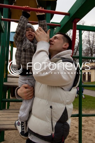 06.04.2011 RZESZOW DZIEN Z Z ZYCIA SIATKARZA ASSECO RESOVIA OLIEGA ACHREMA. N/Z OLIEG ACHREM NA PLACU ZABAW Z SYNEM IGOREM FOT MACIEJ GOCLON / FOTONEWS