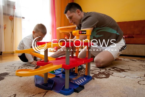 06.04.2011 RZESZOW DZIEN Z Z ZYCIA SIATKARZA ASSECO RESOVIA OLIEGA ACHREMA. N/Z OLIEG ACHREM PODCZAS ZABAWY W DOMU Z SYNEM IGOREM FOT MACIEJ GOCLON / FOTONEWS