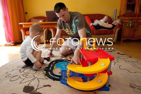 06.04.2011 RZESZOW DZIEN Z Z ZYCIA SIATKARZA ASSECO RESOVIA OLIEGA ACHREMA. N/Z OLIEG ACHREM PODCZAS ZABAWY W DOMU Z SYNEM IGOREM, W TLE ZONA NATALIA Z SYNEM DANIELEM FOT MACIEJ GOCLON / FOTONEWS