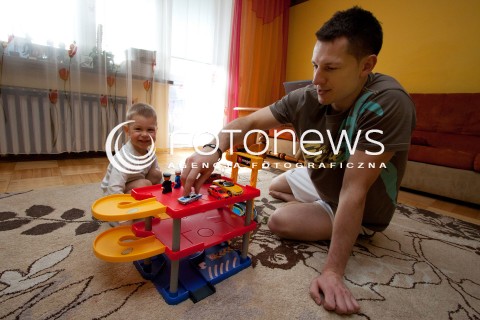 06.04.2011 RZESZOW DZIEN Z Z ZYCIA SIATKARZA ASSECO RESOVIA OLIEGA ACHREMA. N/Z OLIEG ACHREM PODCZAS ZABAWY W DOMU Z SYNEM IGOREM FOT MACIEJ GOCLON / FOTONEWS