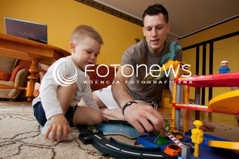 06.04.2011 RZESZOW DZIEN Z Z ZYCIA SIATKARZA ASSECO RESOVIA OLIEGA ACHREMA. N/Z OLIEG ACHREM PODCZAS ZABAWY W DOMU Z SYNEM IGOREM FOT MACIEJ GOCLON / FOTONEWS