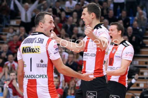 04.01.2013 RZESZOW SIATKOWKA PLUS LIGA 2012/2013 MEN VOLLEYBALL POLAND POLISH PLUSLIGA LEAGUE SEASON 2012/2013 MECZ ASSECO RESOVIA RZESZOW - DELECTA BYDGOSZCZ N/Z MACIEJ DOBROWOLSKI WOJCIECH GRZYB JOCHEN SCHOPS RADOSC FOT MACIEJ GOCLON / FOTONEWS